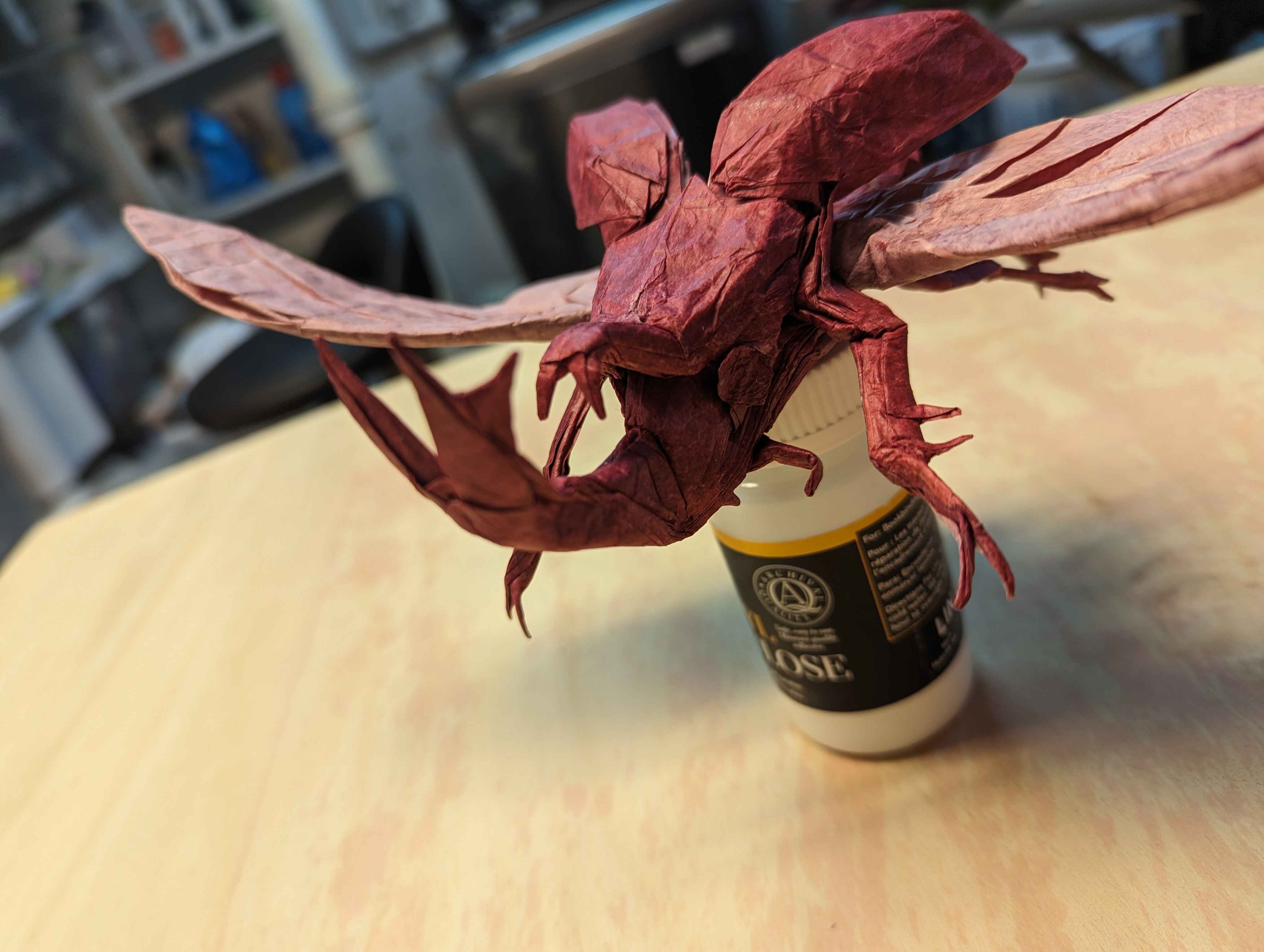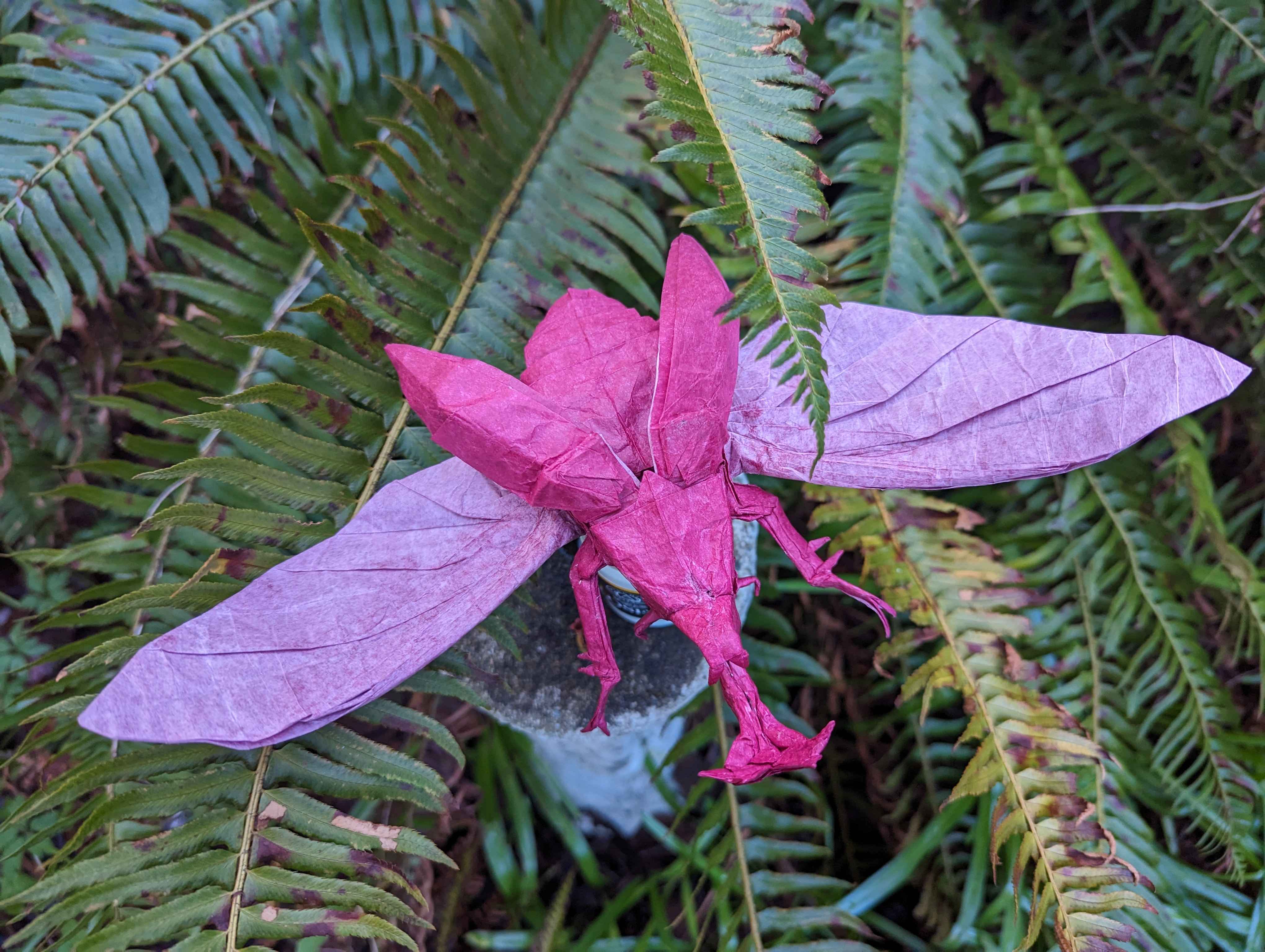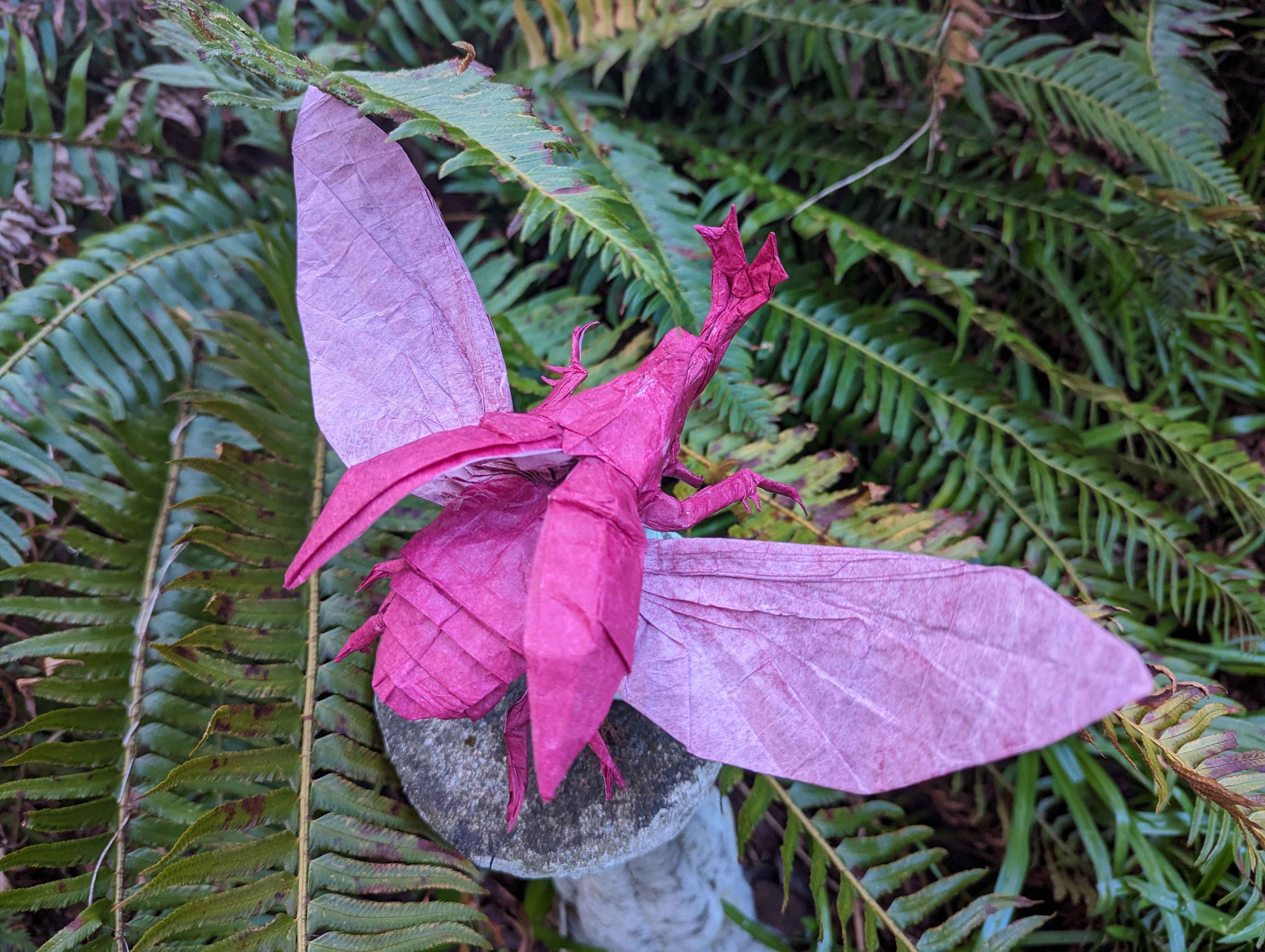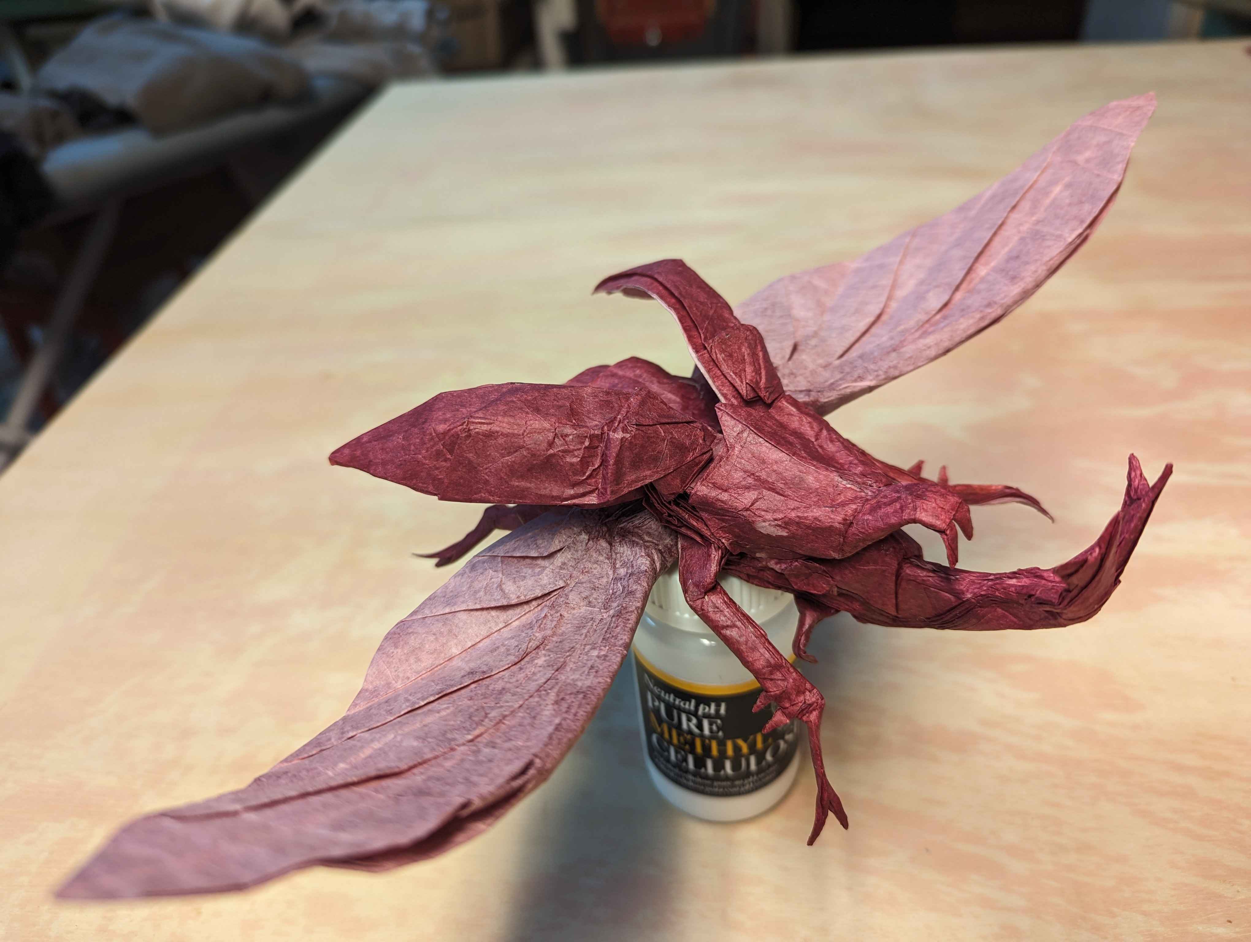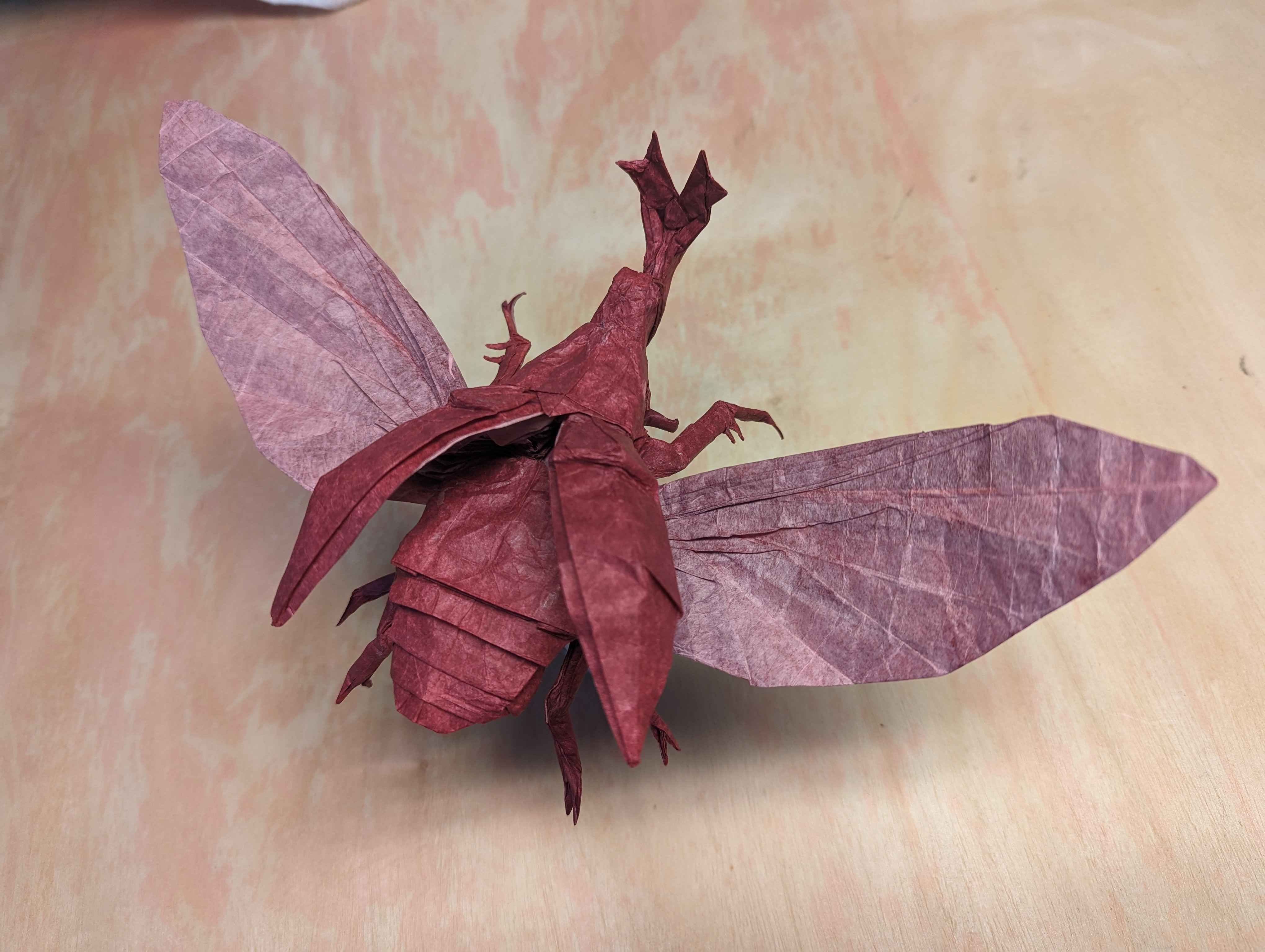Beetles are probably the most popular origami subject - they're perfect for the medium. This is a very complex one, and definitely my favorite of Shuki Kato's models, despite its difficulty. I highly recommend folding this if you have enough time and skill.